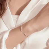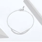 Pulsera Brillante en Forma de V Plata de Ley 925, chapada en oro blanco, con circonitas y longitud ajustable