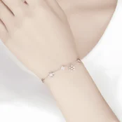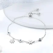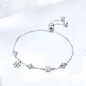 Pulsera Copos de Nieve Plata de Ley 925, chapada en oro blanco, con circonitas azules y blancas y longitud ajustable