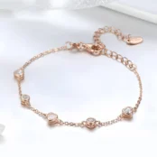 Pulsera Corazones Brillantes Plata de Ley 925, chapada en oro rosa, con circonitas y longitud ajustable