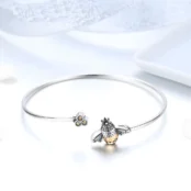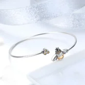 Pulsera Esclava Abeja Reina, Plata de Ley 925, chapada en oro blanco, con circonitas marrones.