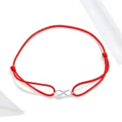 Pulsera Infinito, Plata de Ley 925, chapada en oro blanco, con circonitas y cuerda marinera roja – ajustable.