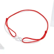 Pulsera Infinito Plata de Ley 925, chapada en oro blanco, con circonitas y cuerda marinera roja – ajustable