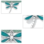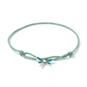 Pulsera Libélula, Plata de Ley 925, chapada en oro blanco, esmalte verde y circonitas, con cuerda marinera verde – ajustable.
