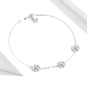 Pulsera Margaritas Plata de Ley 925, chapada en oro blanco y oro amarillo, longitud ajustable