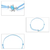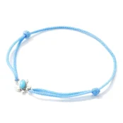 Pulsera Tortuga Plata de Ley 925, chapada en oro blanco, con turquesa y cuerda marinera azul claro – ajustable