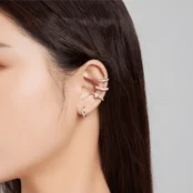 Puño para orejas Corazón Brillante, Plata de Ley 925, chapada en oro blanco, con circonitas.