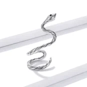 Puño para orejas de Serpiente Plata de Ley 925, chapada en oro blanco, con circonitas verdes
