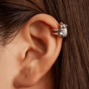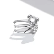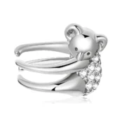 Puño para orejas Koala, Plata de Ley 925, chapada en oro blanco, con circonitas.