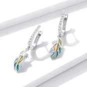 Pendientes Colgantes de Pluma Plata de Ley 925, chapada en oro blanco, esmaltados con circonitas verdes