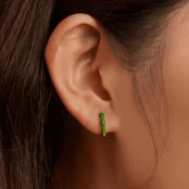Pendientes de Aro Bambú Plata de Ley 925, chapada en oro blanco, con esmalte verde