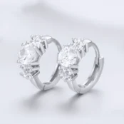 Pendientes de Aro Brillantes Plata de Ley 925, chapada en oro blanco, con circonitas