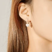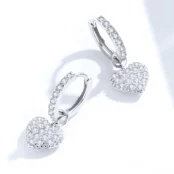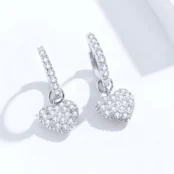 Pendientes de Aro con Colgante de Corazón Plata de Ley 925, chapada en oro blanco, con circonitas