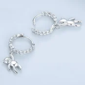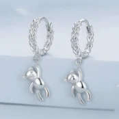 Pendientes de Aro con Colgante de Osito Plata de Ley 925, chapada en oro blanco