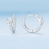 Pendientes de Aro con Rosas Plata de Ley 925, chapada en oro blanco, con circonitas