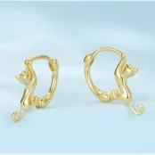 Pendientes de Aro Gato Juguetón Plata de Ley 925, chapada en oro amarillo