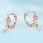 Pendientes de Aro Gato Juguetón Plata de Ley 925, chapada en oro rosa