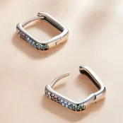 Pendientes de Aro Rectangular Arcoíris, Plata de Ley 925, chapada en oro blanco, con circonitas multicolores.