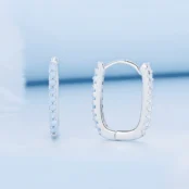 Pendientes de Aro Rectangulares Bicolor, Plata de Ley 925, chapada en oro blanco, con circonitas azul claro y blancas.