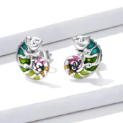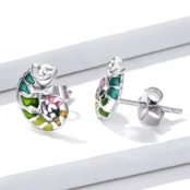 Pendientes de Botón Camaleón Plata de Ley 925, chapada en oro blanco, esmaltados a mano