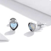 Pendientes de Botón Corazón de Piedra Lunar, Plata de Ley 925, chapada en oro blanco, con piedras lunares en forma de corazón.
