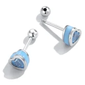 Pendientes de Botón Corazones Azules, Plata de Ley 925, chapada en oro blanco, con circonitas en forma de corazón azul y esmalte azul.