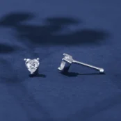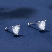 Pendientes de Botón Corazones Brillantes Plata de Ley 925, chapada en oro blanco, con circonitas