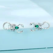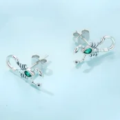 Pendientes de Botón Escorpión Plata de Ley 925, chapada en oro blanco, con circonitas verdes