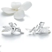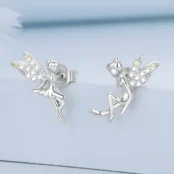 Pendientes de Botón Hermanas Hadas, Plata de Ley 925, chapada en oro blanco, con circonitas.