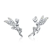 Pendientes de Botón Hermanas Hadas Plata de Ley 925, chapada en oro blanco, con circonitas