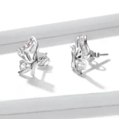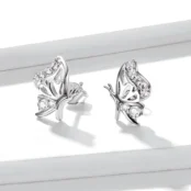 Pendientes de Botón Mariposas, Plata de Ley 925, chapada en oro blanco, con circonitas rosas y blancas.