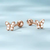 Pendientes de Botón Mariposas Plata de Ley 925, chapada en oro rosa, con circonitas