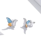 Pendientes de Mariposas Plata de Ley 925, chapada en oro blanco, esmaltados a mano, con circonitas