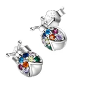 Pendientes de Mariquitas Plata de Ley 925, chapada en oro blanco, con circonitas de colores