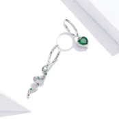 Pendientes Serpiente con Corazón Verde Plata de Ley 925, chapada en oro blanco, con colgantes de circonitas verdes