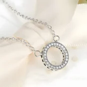 Collar Círculo de Brillo Plata de Ley 925, chapada en oro blanco, con circonitas y longitud ajustable