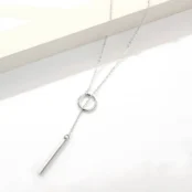 Collar con Colgante de Barra, Plata de Ley 925, chapada en oro blanco, con longitud ajustable y estilo minimalista.