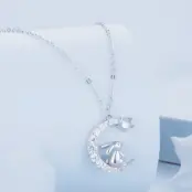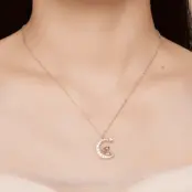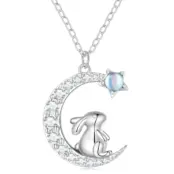 Collar Conejo de la Luna, Plata de Ley 925, chapado en oro blanco, con circonitas y piedra lunar, con longitud ajustable.