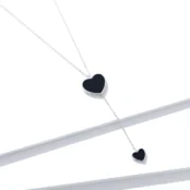 Collar Corazón Negro, Plata de Ley 925, chapada en oro blanco, con esmalte negro.