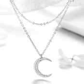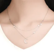 Collar de Luna y Estrellas Plata de Ley 925, chapada en oro blanco, con circonitas y longitud ajustable