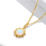 Collar de Sol Plata de Ley 925, chapada en oro amarillo, con ópalo y longitud ajustable