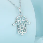 Collar Flor de Loto Hamsa Plata de Ley 925, chapada en oro blanco, con longitud ajustable
