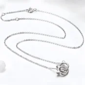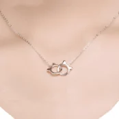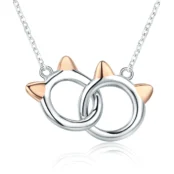 Collar Gatos Enamorados, Plata de Ley 925, chapada en oro blanco, con detalles chapados en oro rosa y longitud ajustable.