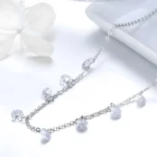 Collar Gotas Deslumbrantes, Plata de Ley 925, chapada en oro blanco, con colgantes de circonitas redondas.