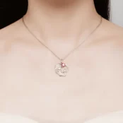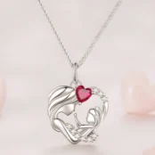 Collar Madre e Hijo, Plata de Ley 925, chapada en oro blanco, con circonitas blancas y rojas, con longitud ajustable.