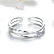 Anillo Banda Torcida Plata de Ley 925, chapada en oro blanco – ajustable