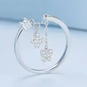 Anillo Colgante de Mariposas, Plata de Ley 925, chapada en oro blanco, con circonitas – ajustable.