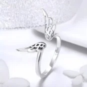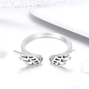 Anillo de Alas de Ángel, Plata de Ley 925, chapada en oro blanco – ajustable.