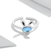 Anillo de Conejo Plata de Ley 925, chapada en oro blanco, con piedra lunar ovalada – ajustable