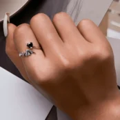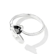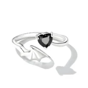 Anillo de Corazón Negro, Plata de Ley 925, chapada en oro blanco, con alas de murciélago y cuernos de diablo, y circonitas negras – ajustable.