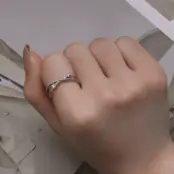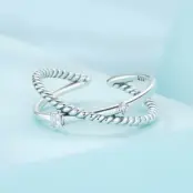 Anillo de Cuerda Torcida, Plata de Ley 925, chapada en oro blanco, con circonitas – ajustable.